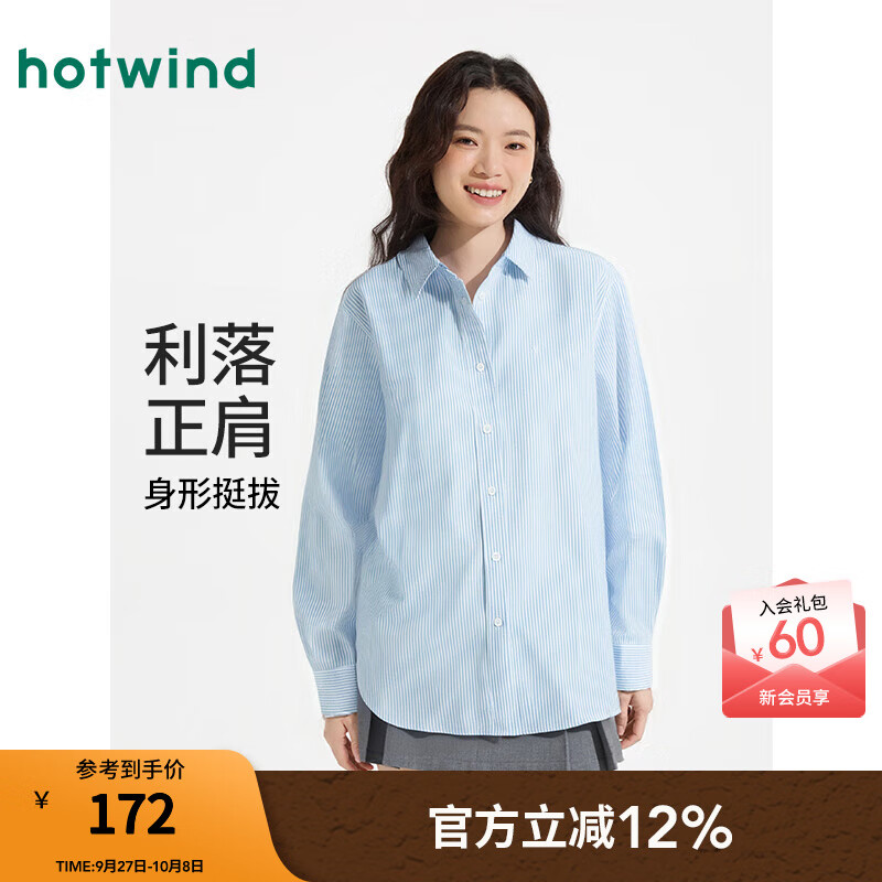 热风【商场同款】女士长袖衬衫2025年秋季新款牛津纺刺绣易打理衬衣 06兰色 S