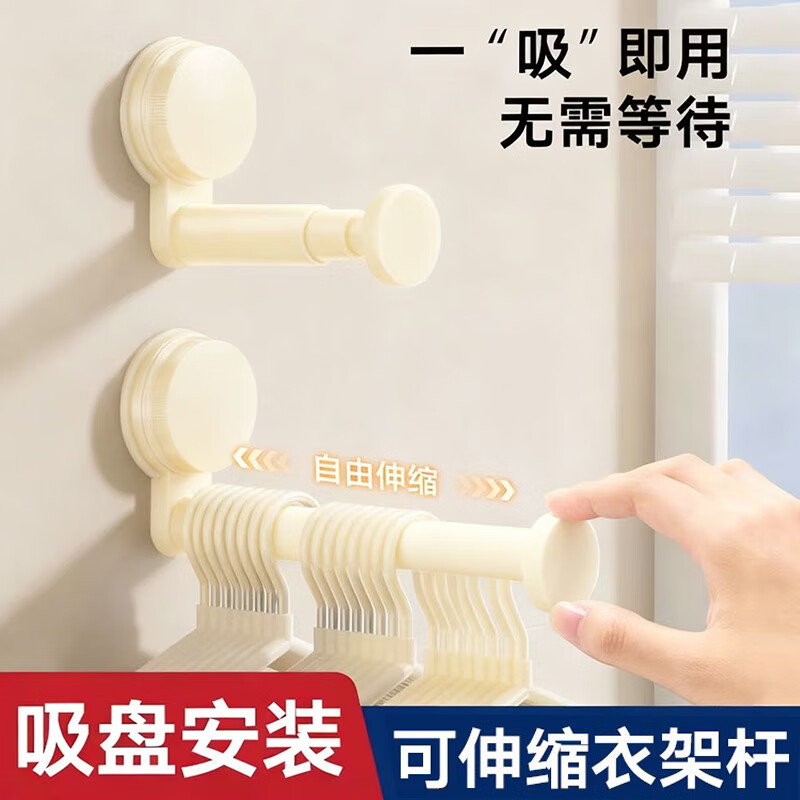 吱凡日本吸盘阳台衣架收纳神器免打孔家用多功能伸缩挂衣架子墙上壁挂 【吸盘可伸缩】1个装奶白【掉落包赔】