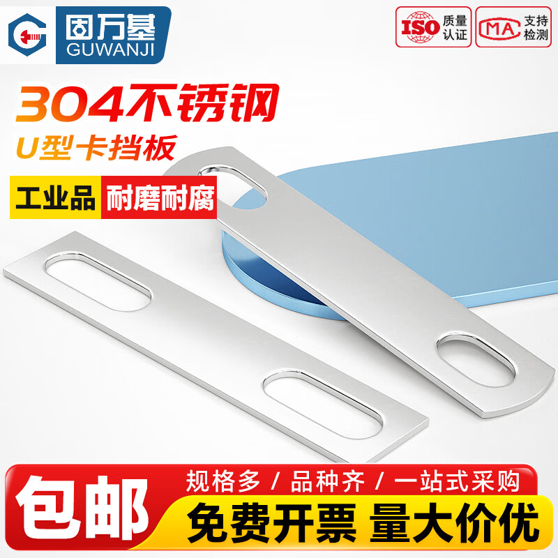 固万基(GUWANJI)304不锈钢U型卡挡板U型螺丝螺栓挡板管夹管卡挡片方形垫片 M6x14[20个]