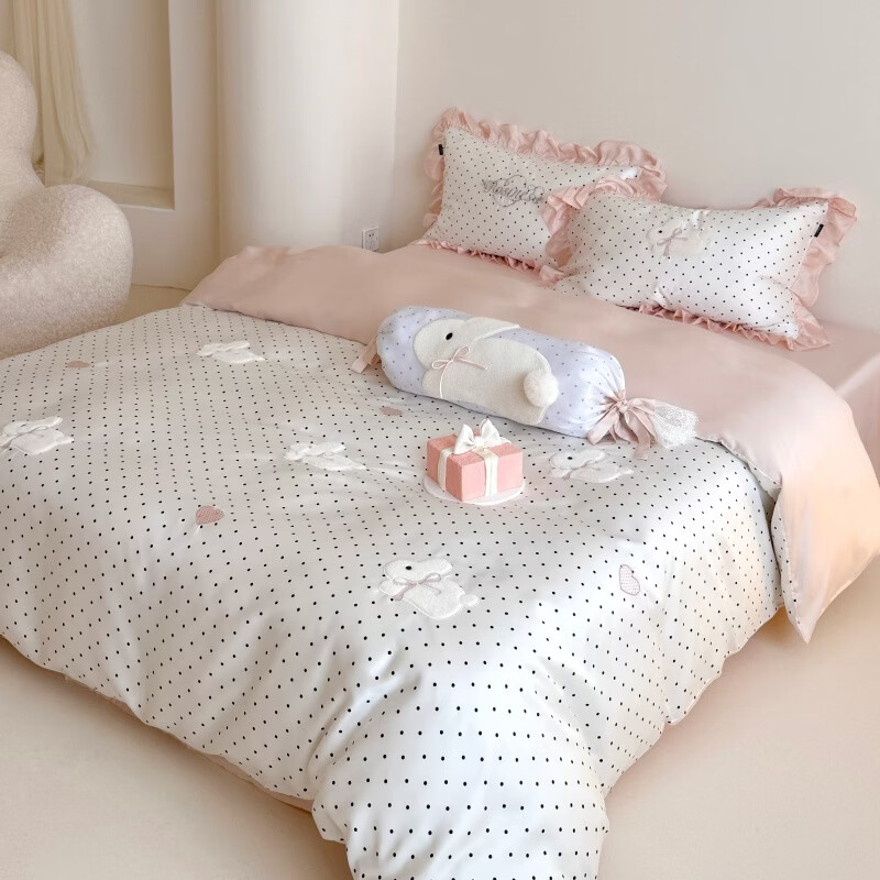 ROLAND LIVE夏季公主风莱赛尔天丝四件套波点被套凉感丝滑床单床笠床上用品 LB 天丝套件-奶油甜兔黑波点 1.8米床 床单款 【被套200*230cm】