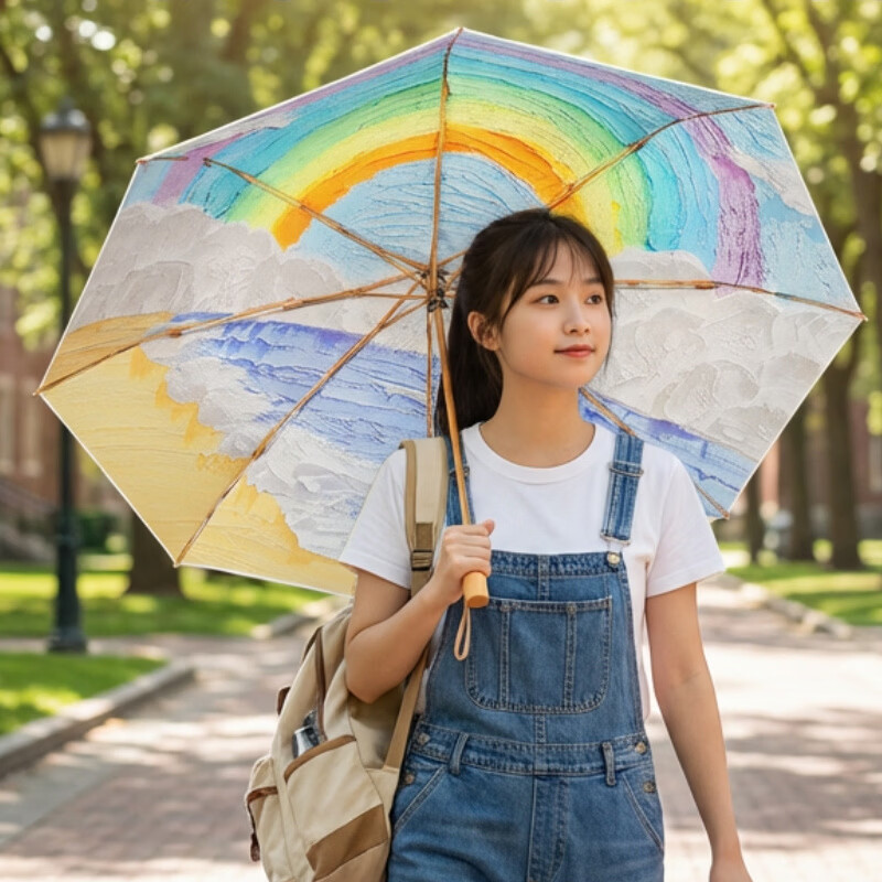沃有家雨伞手动油墨画钛银胶防紫外线晒太阳伞三八女神节礼物晴雨伞手动 彩虹三折8K手动