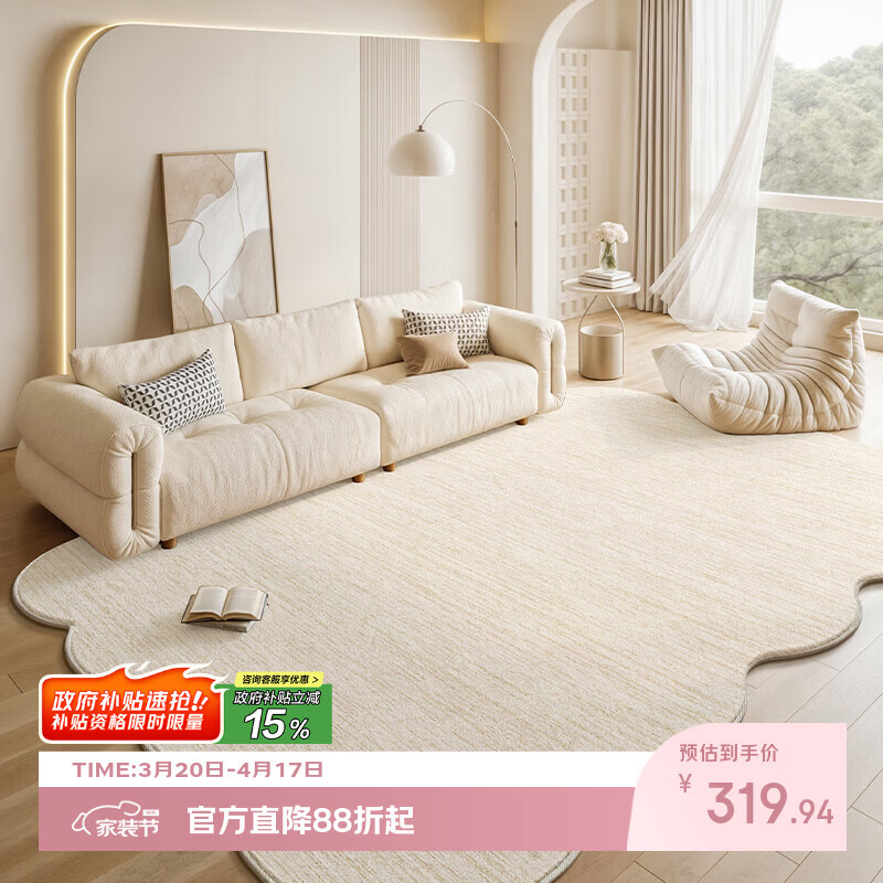 Y U-LIVE地毯客厅奶油风纯色2026新款免洗可擦防水防污沙发异形不规则地垫 S仿羊绒-禾诗异形 200×300cm【热销推荐尺寸]