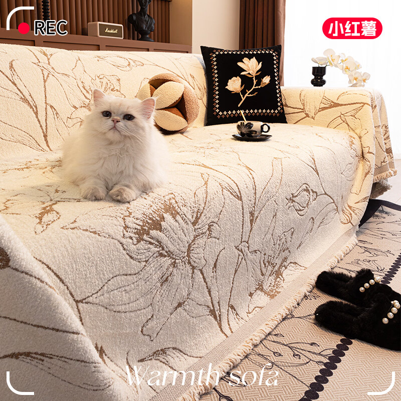 缔卓怡高级感沙发盖布巾2025新款秋冬季坐垫全盖防滑毛绒毯子皮沙发套罩 惜花-咖色 180cm*130cm (适用于单人位/脚踏)