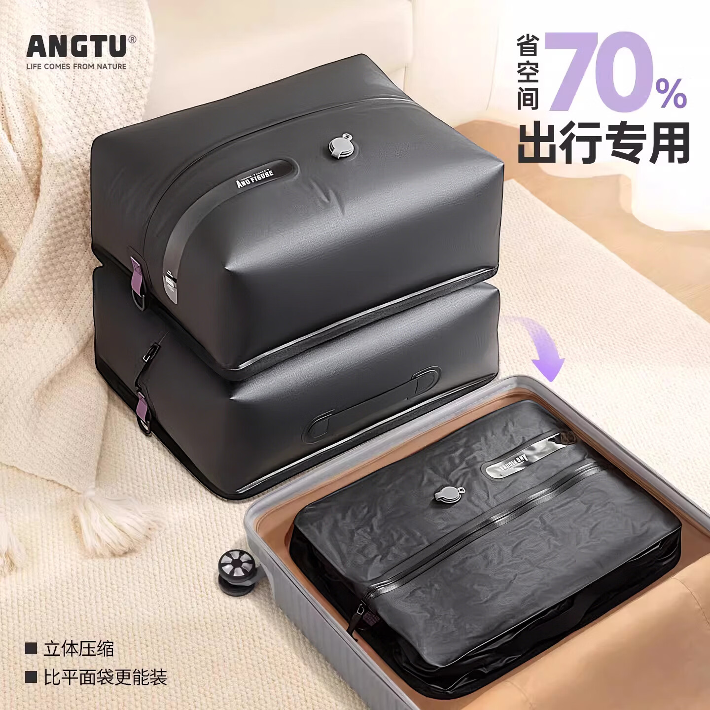 昂图真空压缩袋旅行收纳包防潮防水行李箱出差旅游便携衣物衣服收纳袋 深空灰-尼龙加厚版【两个装】+智能电泵 超厚不漏气/防水面料