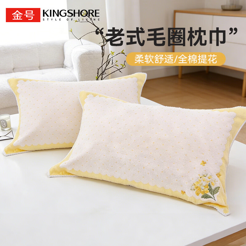 金号全棉枕巾单只100%纯棉毛圈老式枕头巾一对加厚男士防油吸汗四季 繁花-米黄【A类100%纯棉】 一只装 【隔油防脏】