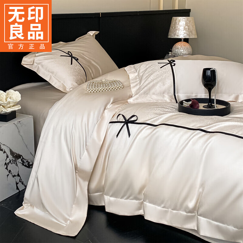 无印良品兰精天丝床上四件套高级轻奢2026新款床单被套裸睡床笠款床上用品 克拉拉-元气白桃【高端轻奢天丝棉】 1.8m 床笠款 四件套-被套200x230cm