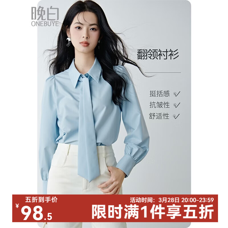 晚白【新品】2026春款面试气质正装翻领衬衣减龄舒适职业穿搭通勤衬衫 浅蓝色 L