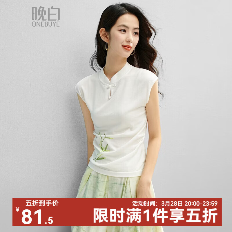 晚白【新品】2026年春款新中式立领盘扣上衣亲肤莱赛尔无袖针织衫女 米杏色 L