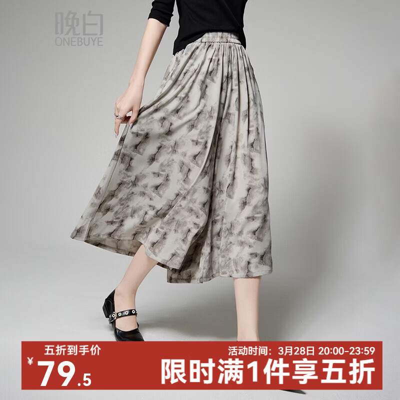 晚白【新品】2026年春款休闲高腰裤子利落显瘦雪纺印花阔腿裤女 花色 28