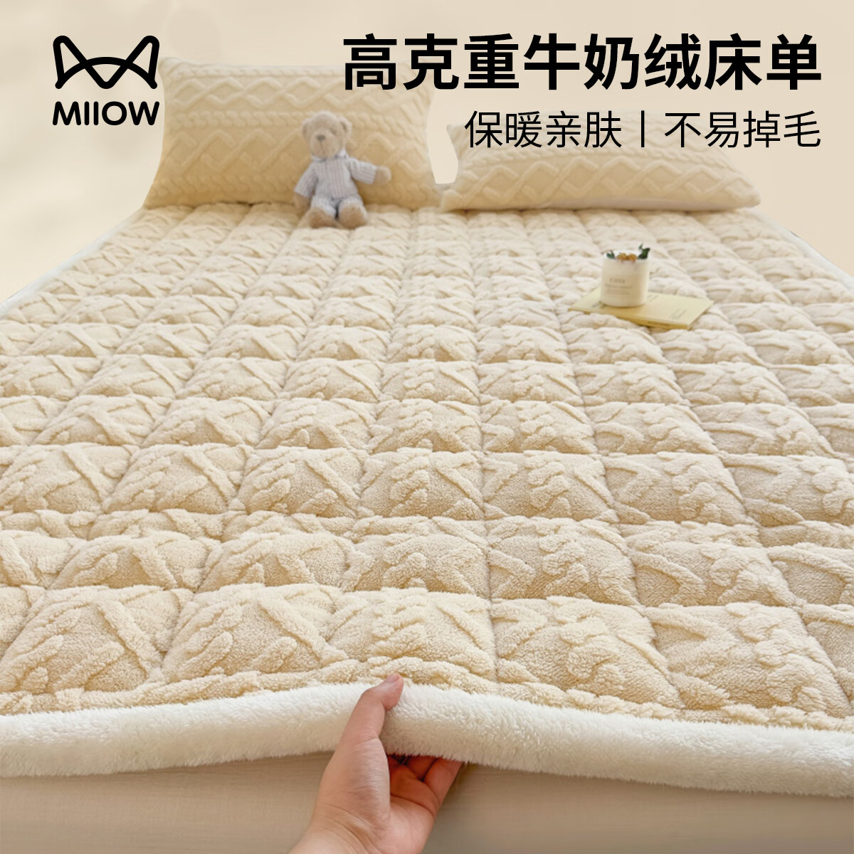 猫人(MiiOW)冬季牛奶绒床单单件加绒加厚毛绒珊瑚绒学生宿舍单双人被单三件套 米杏色【软糯亲肤更暖更耐用】 90x190cm单件床单【适0.9米床】