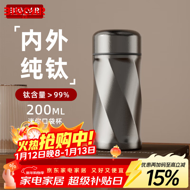 大卡纯钛保温杯便携水杯小巧口袋杯户外小容量迷你钛杯茶杯 皓月银200ml