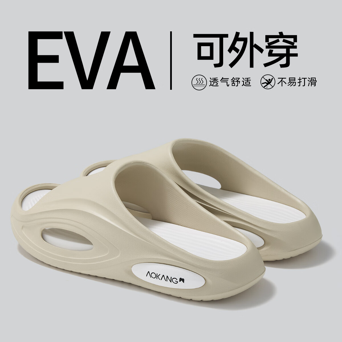 奥康运动拖鞋男士夏季外穿踩屎感厚底防滑防臭eva户外沙滩海边凉拖鞋 卡其 42-43