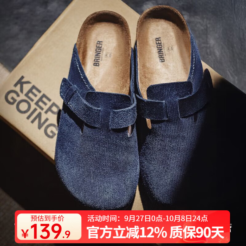 马登2025夏秋新款座头鲸蓝色穆勒鞋男休闲平底全包头外穿半拖鞋子 深海蓝 马登工装 43