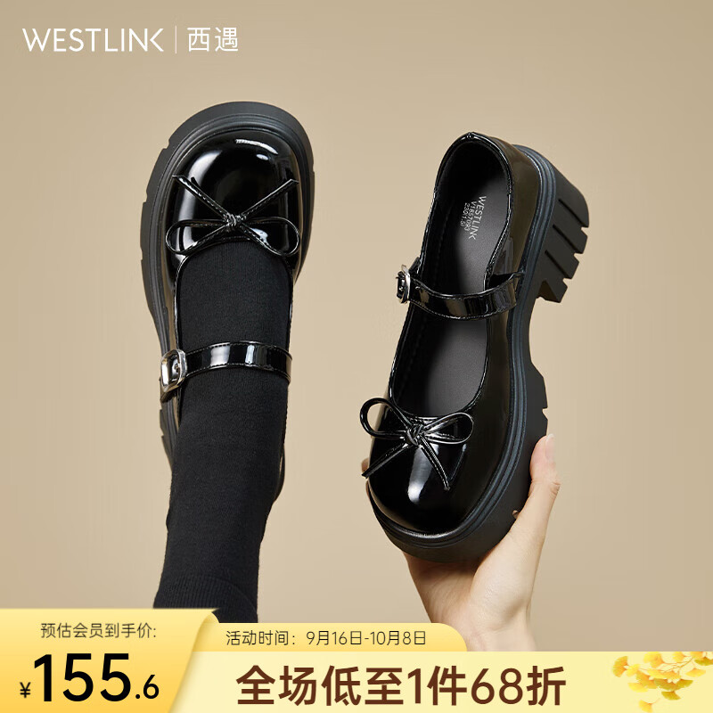 西遇(Westlink)厚底玛丽珍鞋女2025新款秋季法式蝴蝶结圆头增高单鞋JK小皮鞋 黑色 38 (240)
