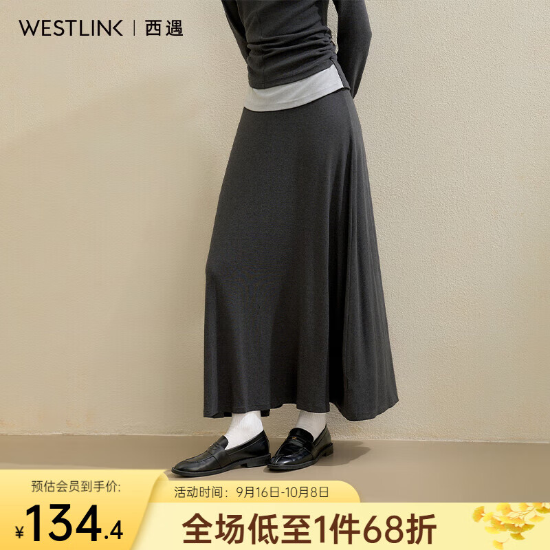 西遇慵懒风软糯针织裙女2025秋季大裙摆遮胯显瘦百搭休闲半身裙 灰色 S (26)
