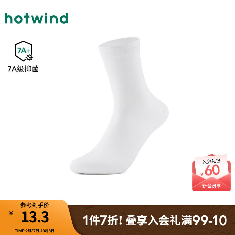 热风【商场同款】男士中筒袜2025年秋新款抑菌中帮袜纯色弹力舒适棉袜 04白色 1双 均码