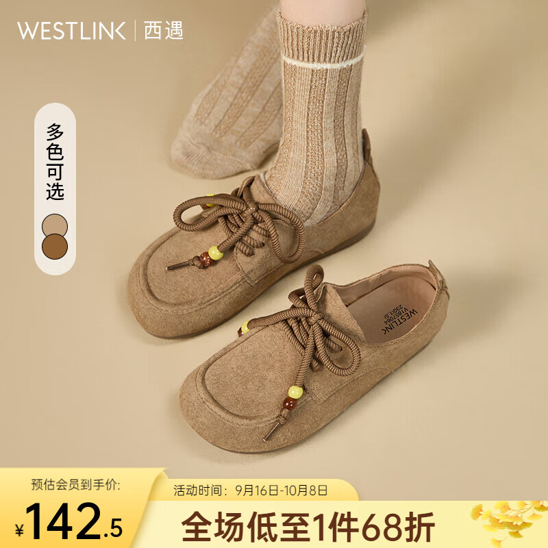 西遇软底袋鼠鞋女2025新款秋季百搭复古系带乐福小皮鞋平底勃肯鞋 卡其色 38 (240)