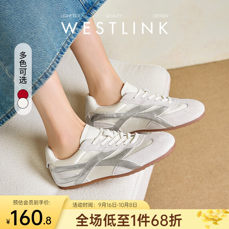 西遇平底德训鞋女2025新款秋季百搭方头小白鞋轻便软底红色运动鞋 米色 39 (245)