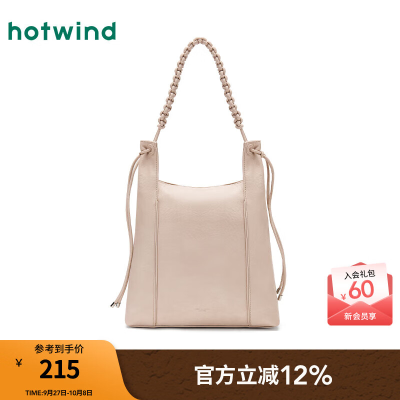 热风女包大容量单肩包2025年秋季新款女士凹扣编织肩带软包通勤托特包 03米色 F