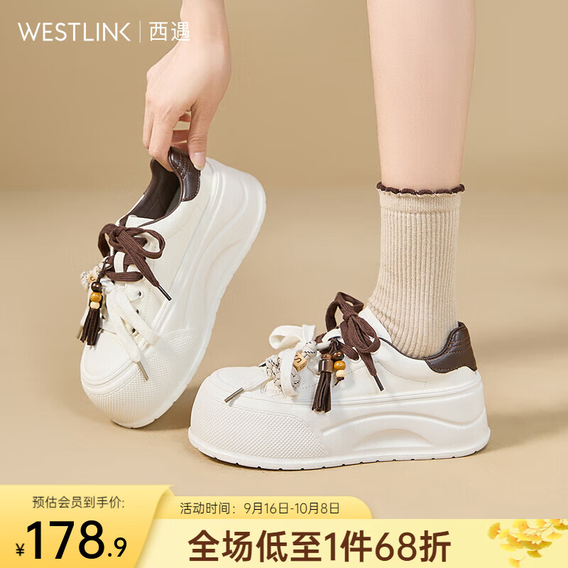 西遇(Westlink)西遇松糕小白鞋女2025新款秋季复古串珠流苏系带休闲鞋厚底板鞋 白色 37 (235)