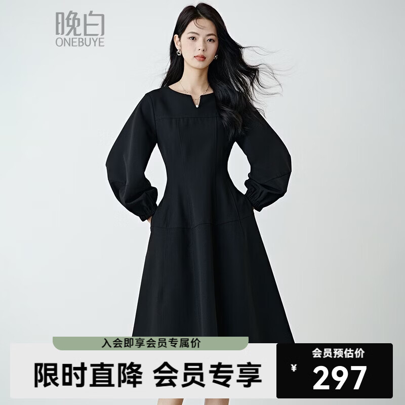 晚白【新品】2026年春款时尚裙子利落修身显瘦法式连衣裙【不含腰带】 黑色 XL