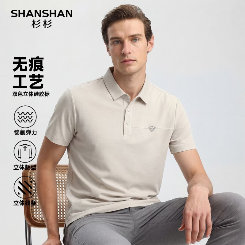 SHANSHAN杉杉【无痕】男士短袖T恤男夏季新款纯色休闲百搭Polo衫男 浅卡其 L /175