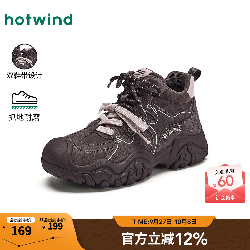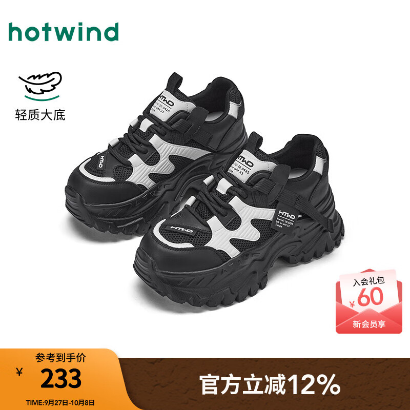 热风【商场同款】厚底老爹鞋女鞋2025年秋季新款复古百搭运动鞋增高鞋 19黑白 37