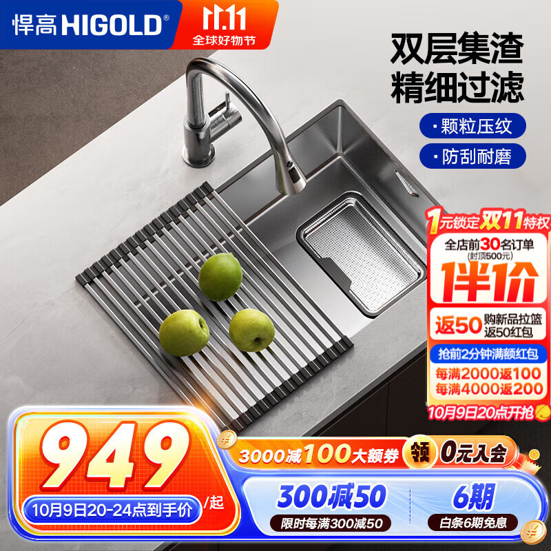 悍高(HIGOLD)厨房水槽304不锈钢手工大单槽家用台上台下洗菜盆洗碗槽水池 60*43cm|劲滤集渣-三功能抽拉