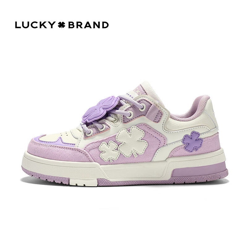 LUCKY BRAND板鞋 女鞋情侣款四叶草美式潮鞋男士透气增高舒适橡胶底休闲鞋 浅紫色 36