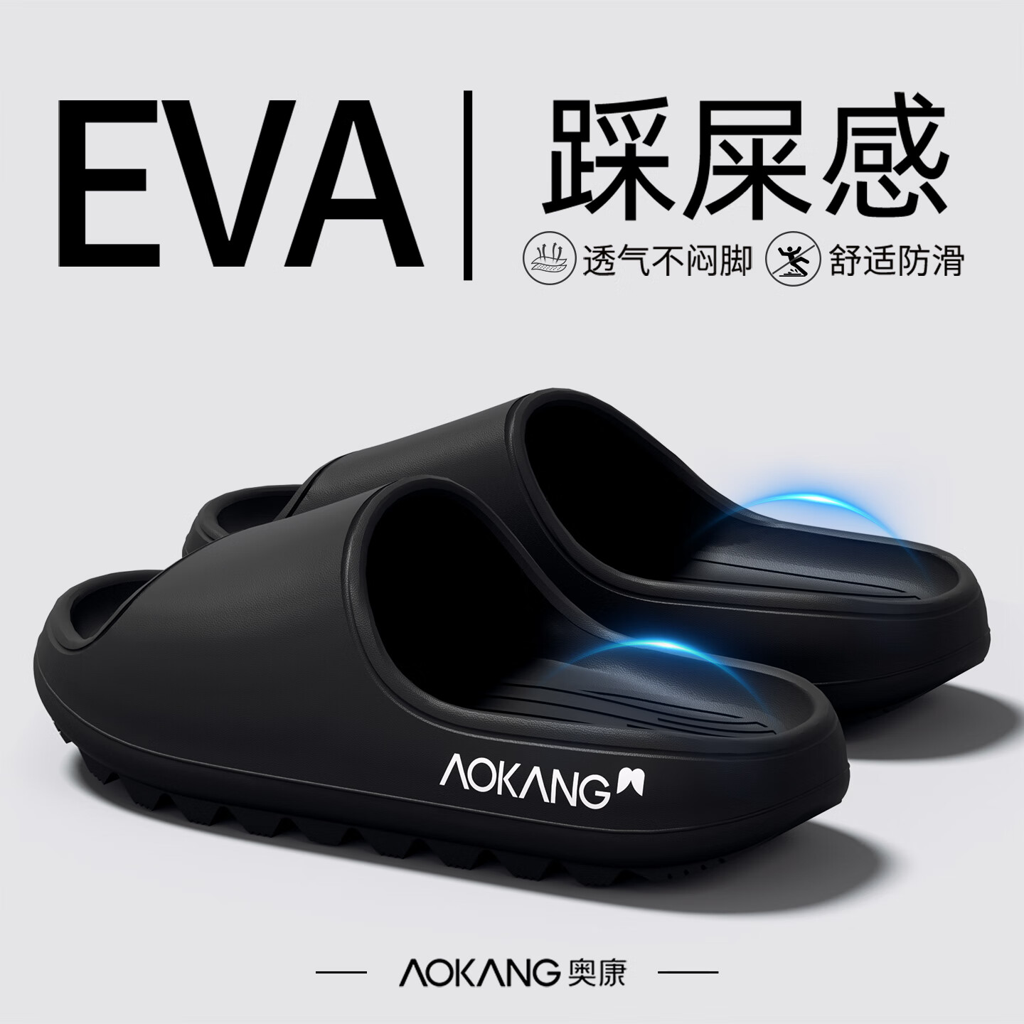 奥康(Aokang)踩屎感拖鞋男士夏季室内居家用防滑厚底eva洗澡凉拖鞋男户外穿 黑色 42-43 【适合41-42】