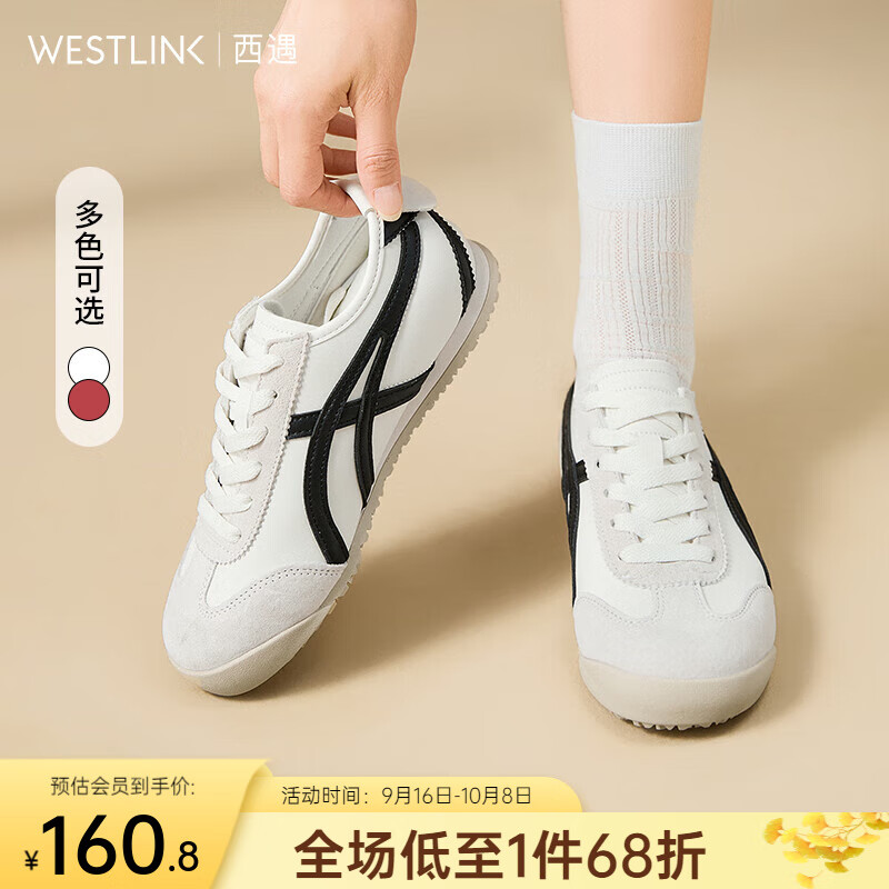 西遇平底德训鞋女2025新款秋季美式拼色轻便休闲鞋红色薄底运动鞋 白+黑色 37 (235)