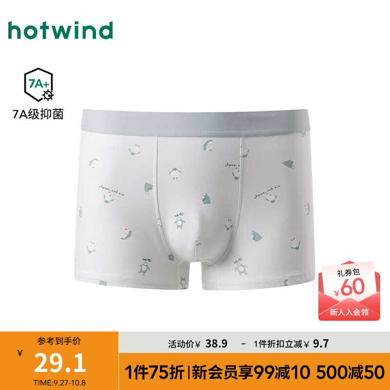 热风男士内裤2025年秋季新款小企鹅棉氨平角内裤抑菌亲肤平角短裤 31浅绿 L