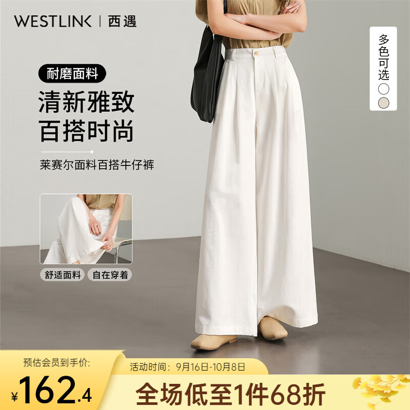 西遇白色宽松阔腿裤女新款通勤高腰小个子慵懒风休闲裤 白色 26