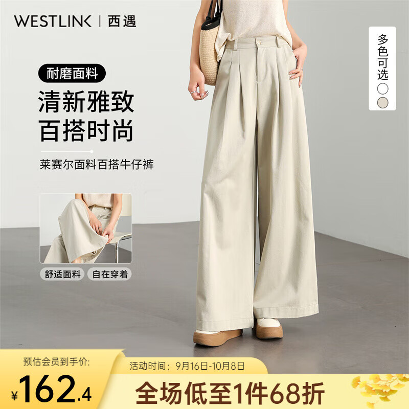 西遇宽松阔腿裤2025春新款通勤高腰莱赛尔慵懒风休闲牛仔裤 卡其色 S (26)