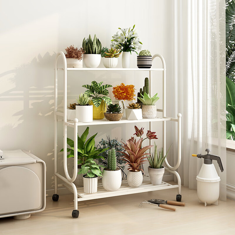 顾家家居(KUKA)奶油风大容量多层设计万向轮可移动阶梯花架奶白DS3461XJ 阶梯花架奶白色80*102