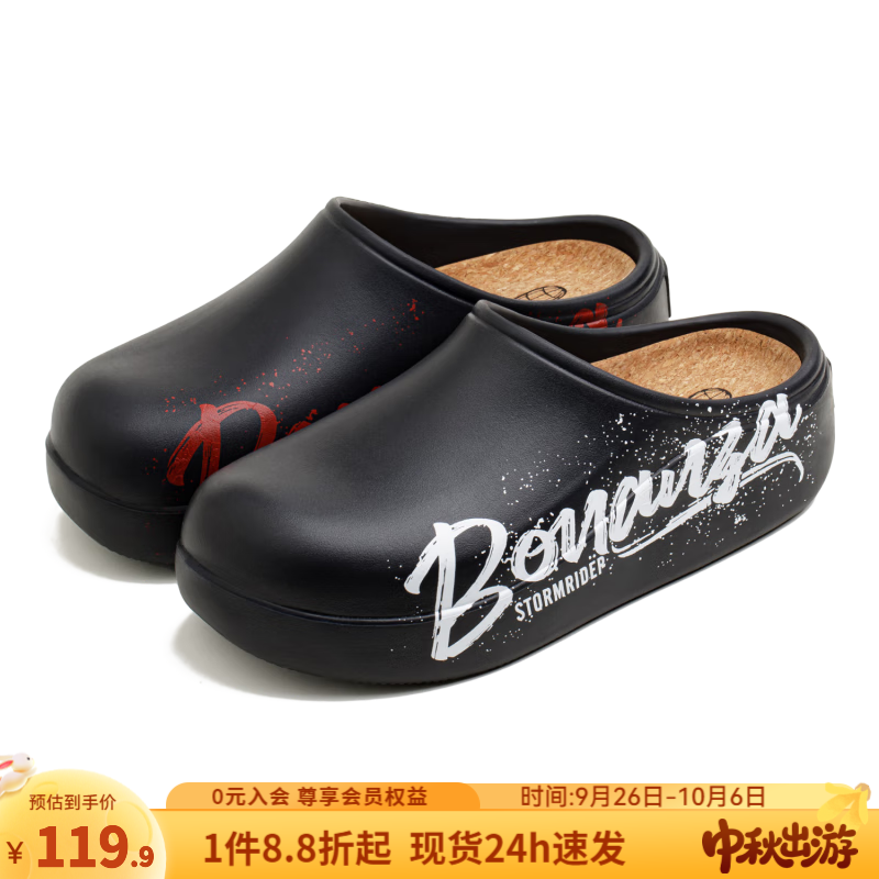 马登工装外穿洞洞鞋2025夏季新款黑色半托厚底涉水防滑厨师鞋包头拖 风暴黑 42-43 【M8】 男士夏季凉拖鞋