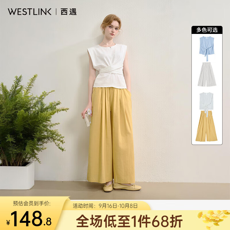 西遇海盐奶油文艺感套装女2025春夏背心搭阔腿裤两件套 白+黄色 M (160)