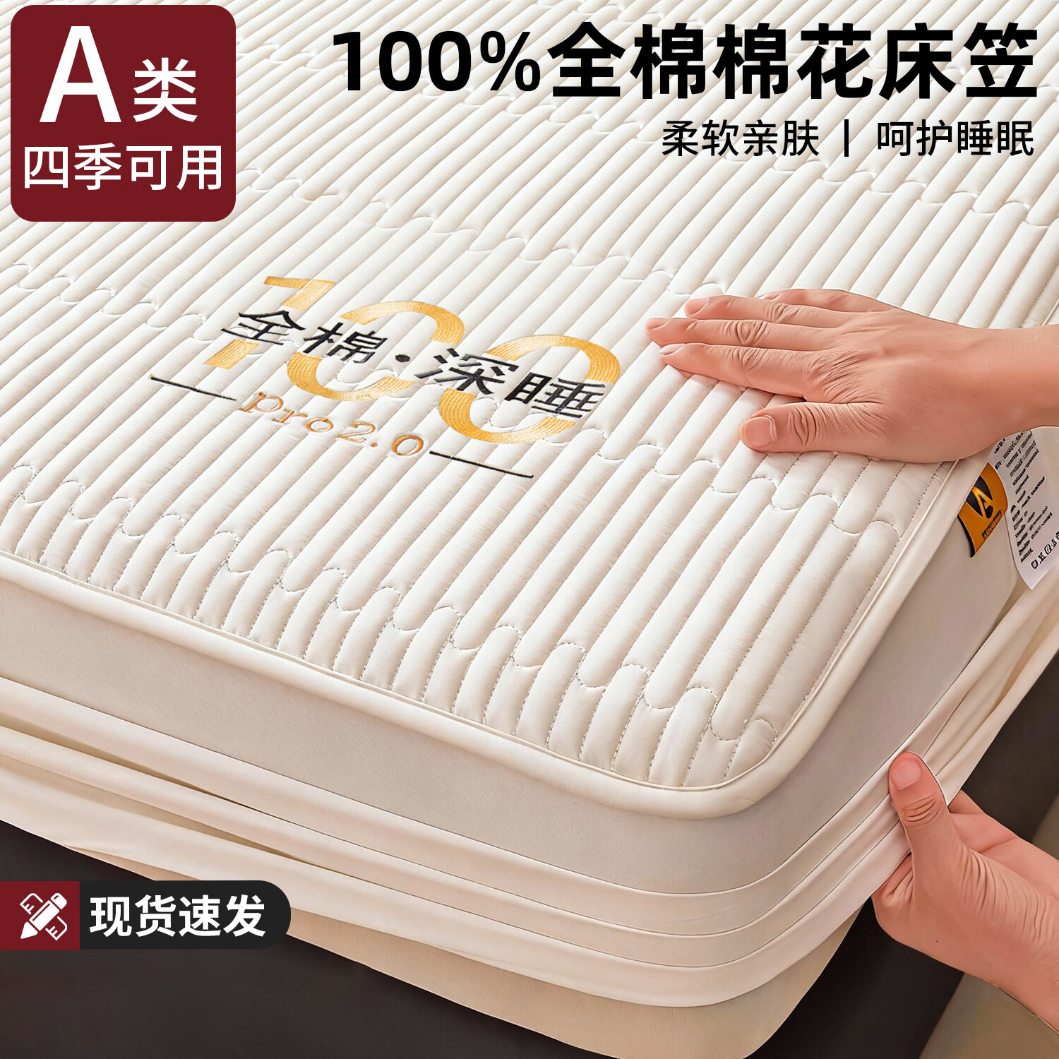 无印良品a类全棉夹棉床笠1.8米x2米床罩纯棉床垫保护套席梦思套罩床上用品 卡米-白【100%全棉面料 亲肤裸睡】 180*200cm单床笠
