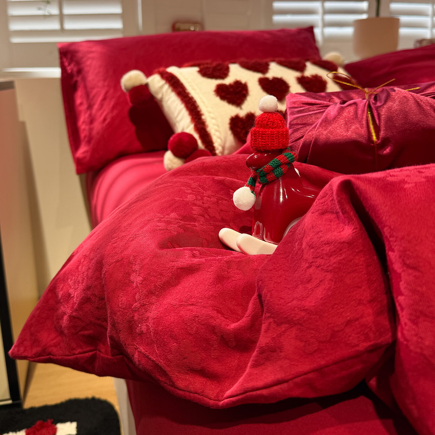 苏萱高级60Pro长绒棉提花结婚四件套全棉大红色床单纯棉被套床上用品 梦幻花园红 1.8m 床单款 四件套-被套200x230cm