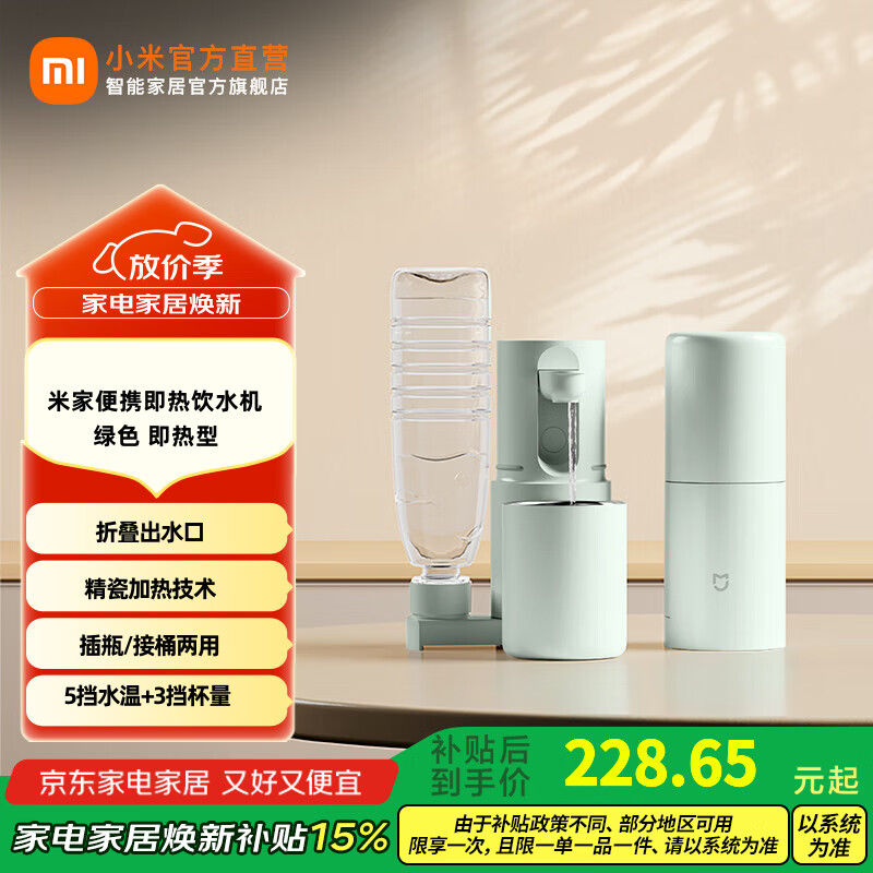米家即热式饮水机 便携式烧水壶 出差旅行电热水壶 台式桌面家用小型迷你速热直饮机 米家便携即热饮水机 绿色 即热型