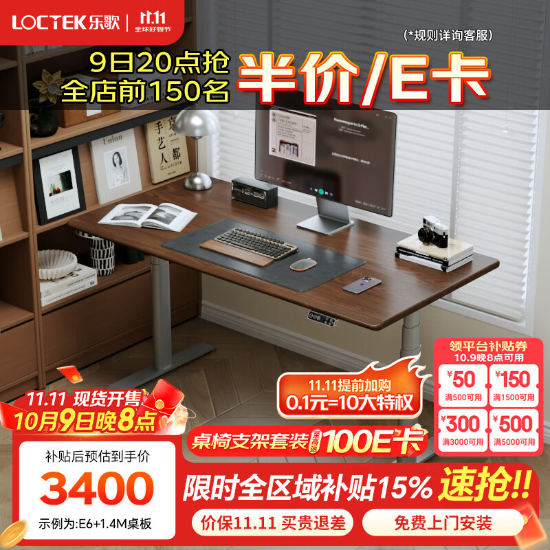 乐歌智能电动升降桌实木电脑桌白蜡木书房卧室站立式工作台写字桌子 【实木白蜡木黑胡桃木色桌板】E6 桌板尺寸:1.6*0.8M