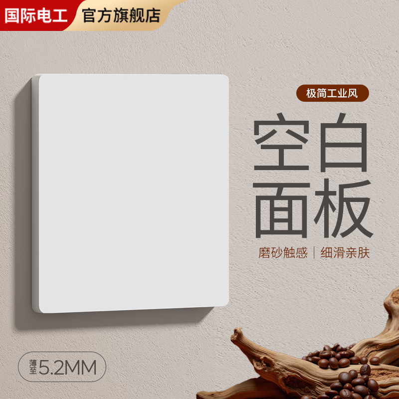 FDD国际电工拨杆个性灯开关复古电源双开双控单联一位总控磨砂酒店超薄面板 肤感白-空白面板