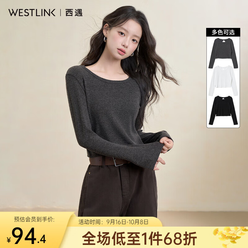 西遇(Westlink)修身长袖T恤女秋季新款辣妹风圆领露背镂空短款上衣 黑+灰色 (预售15天) M (160)