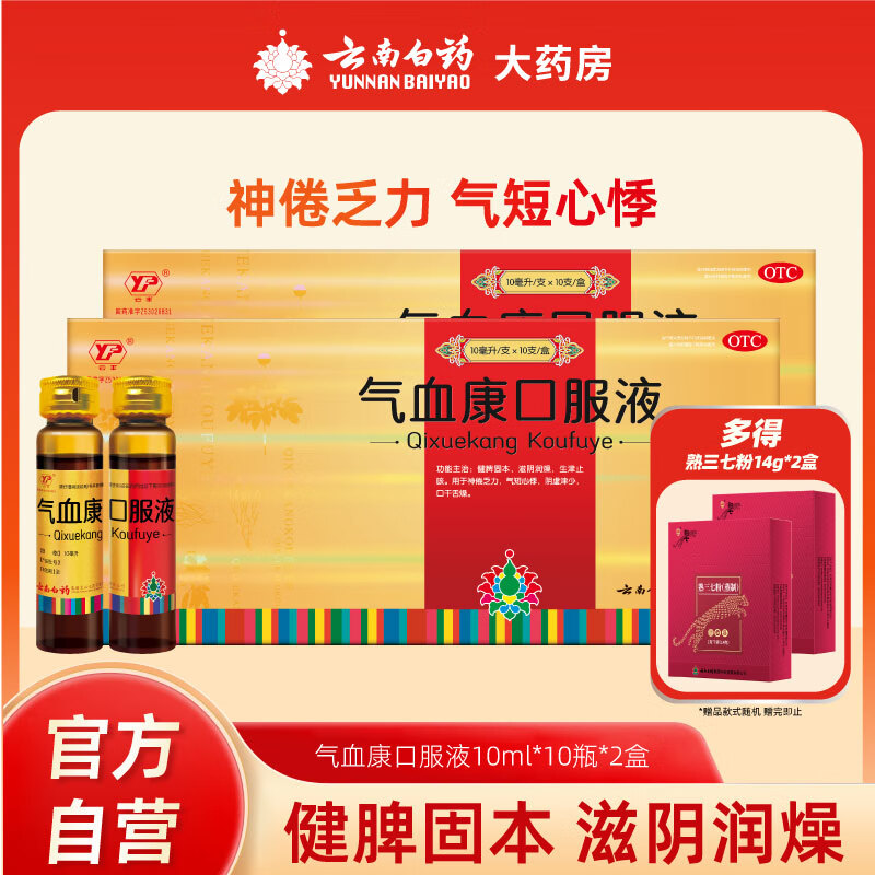 云丰[云丰]云南白药【联系客服有惊喜】气血康口服液 10ml*10支 滋阴润燥 生津止咳 神倦乏力 气短心悸送礼 2盒装 【改善装】气血不足,多人选择