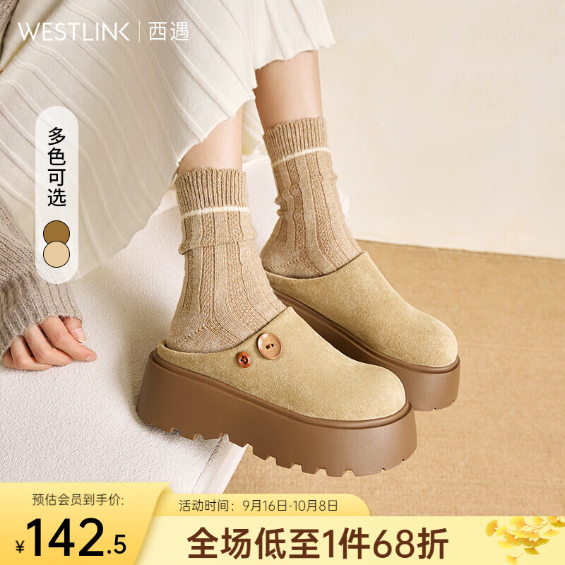 西遇(Westlink)西遇增高厚底勃肯鞋女2025新款秋季复古松糕鞋一脚蹬包头半拖鞋 杏色 37 (235)