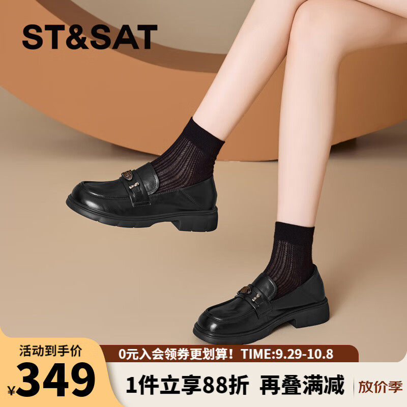 星期六时尚通勤百搭乐福鞋2025秋季新款圆头小皮鞋MTSSD3111WJ9 黑色 36