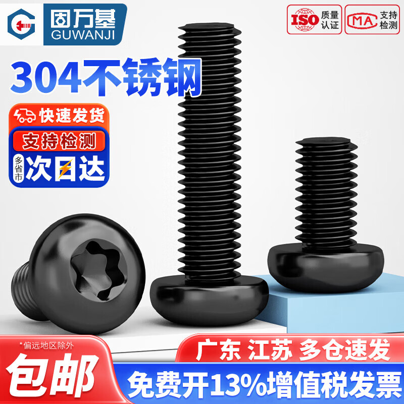 固万基(GUWANJI)黑色304不锈钢圆头内梅花螺丝盘头螺钉防盗螺栓M2M2.5M3M4M5M6M8 M4x50[10只]