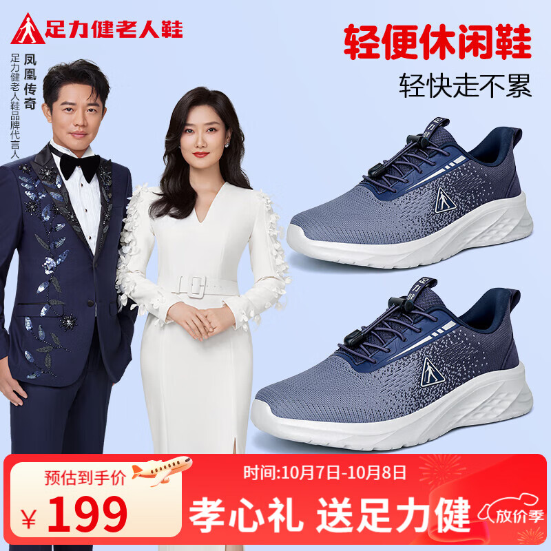 足力健老人鞋男女秋季新品中老年休闲舒适散步鞋不累脚送礼 天青蓝/休闲蓝-男款 39