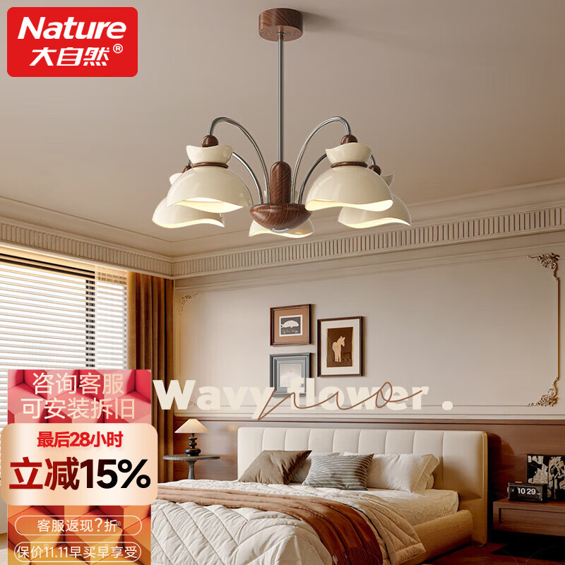 大自然照明中古风客厅吊灯2025新款创意花束法式奶油风大气大厅主灯中山灯具 【全光谱护眼光源】奶白色 5头75CM 三色变光