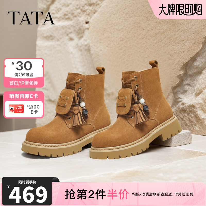 他她(TATA)靴子女2025西部靴复古户外工装靴厚底马丁靴短靴YXB01DD5 棕色 35